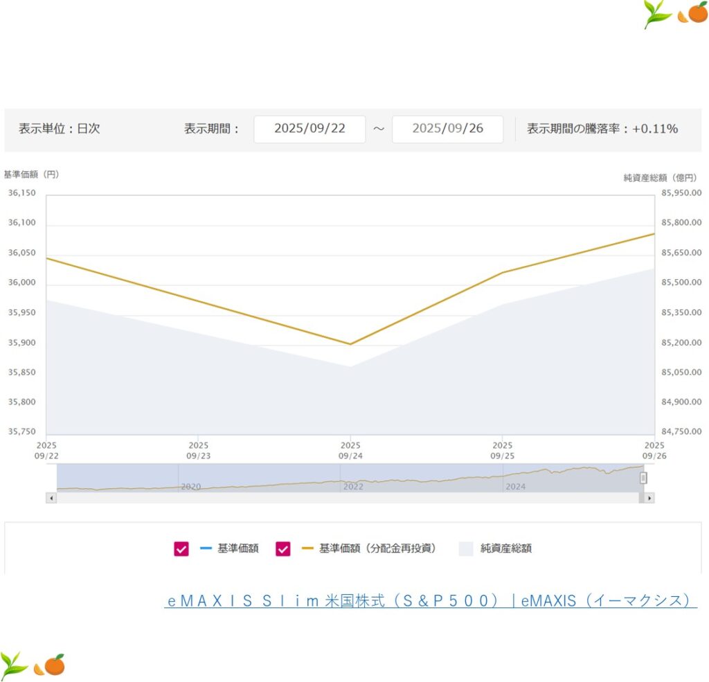 2025年9月22日~9月26日の週を振り返ると、eMAXIS Slim S&P500(S&P500連動ファンド)の基準価格は上昇し、ドル/円相場は円安方向に動いたとされます。以下、市場動向と経済イベントを交えて総括します。