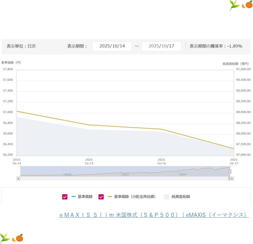 結果として、eMAXIS Slim S&P500の基準価格は下落し、日本人投資家にとっては為替・株価の両面から評価額が減少する週となりました。