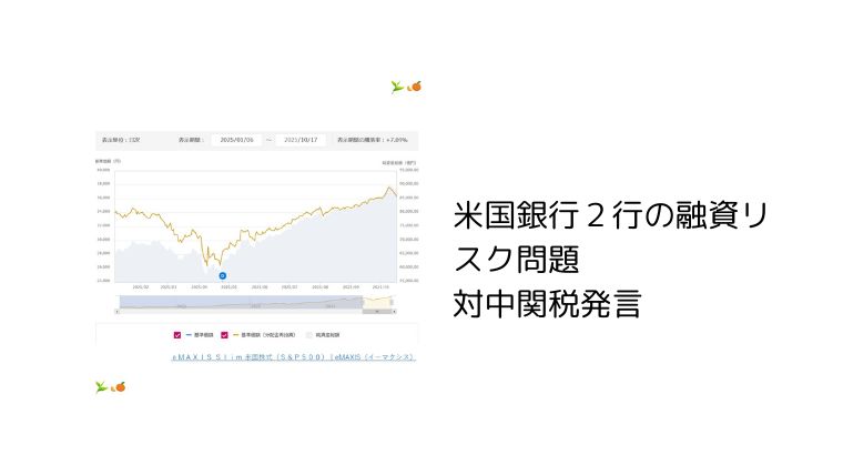 今週のeMAXISSlim米国株式S&P500の基準価格は下がり、ドル円は円高に進みました。これらの要因として米国銀行2行の融資不安と米国政府の対中関税発言の2つを含めて総括します。