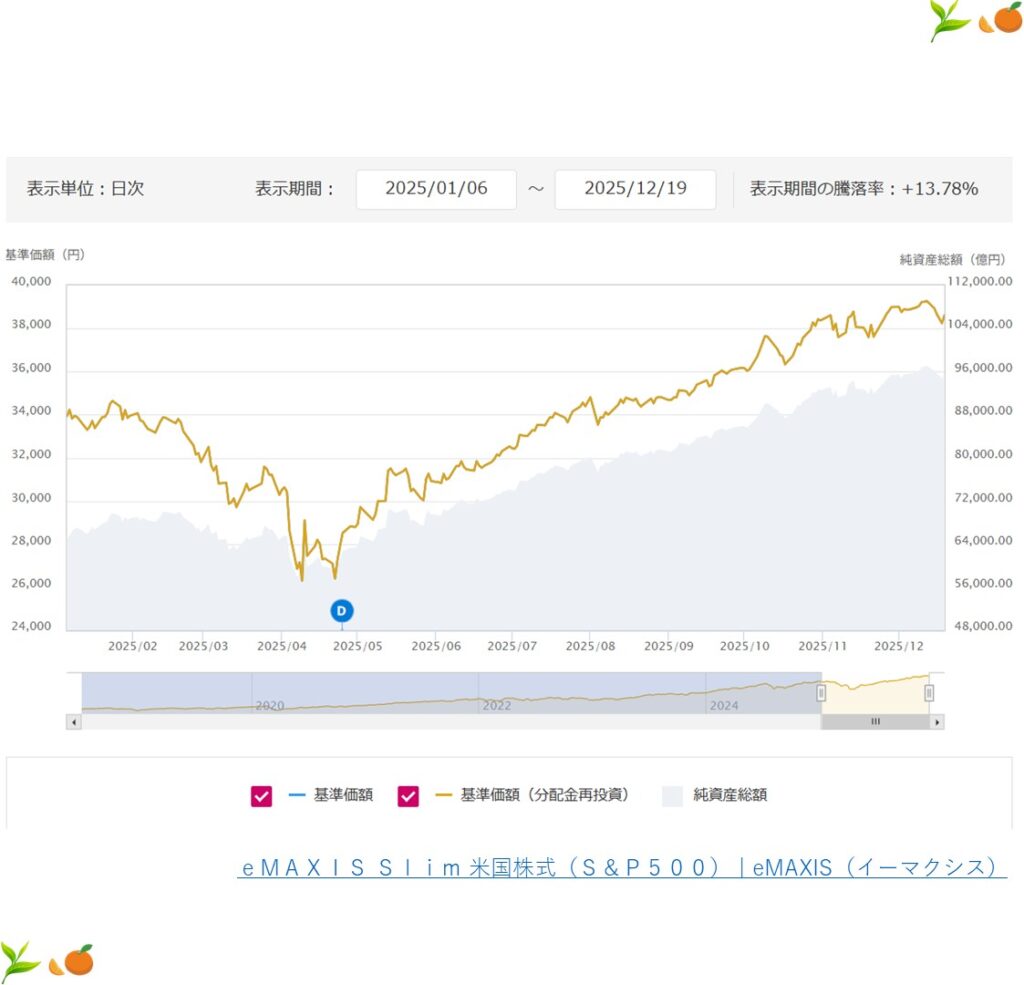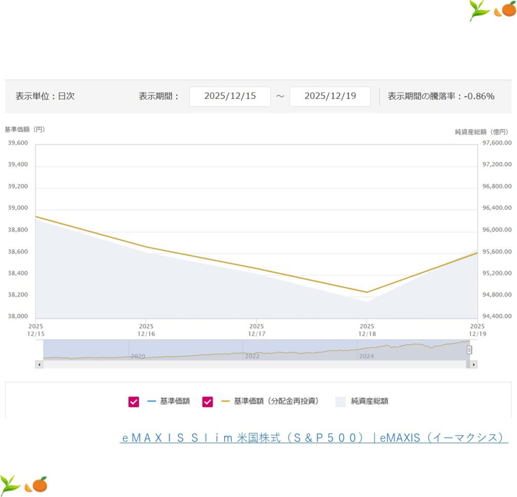 📊 eMAXIS Slim S&P500(米S&P500連動型インデックスファンド)の基準価格が下落した点、